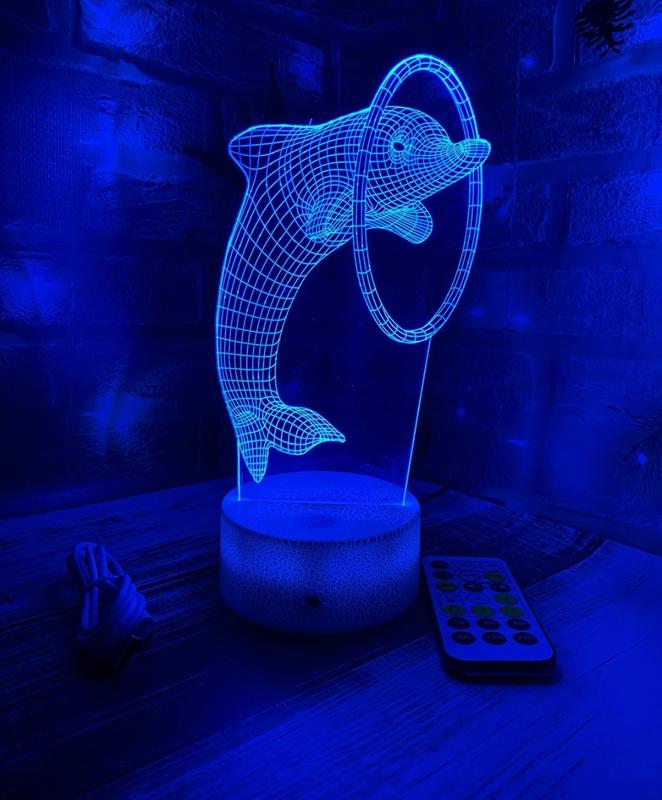 3d-лампа Дельфин в кольце, подарок для деток, 3D светильник или ночник,7 цветов и 4 режима, таймер, пульт