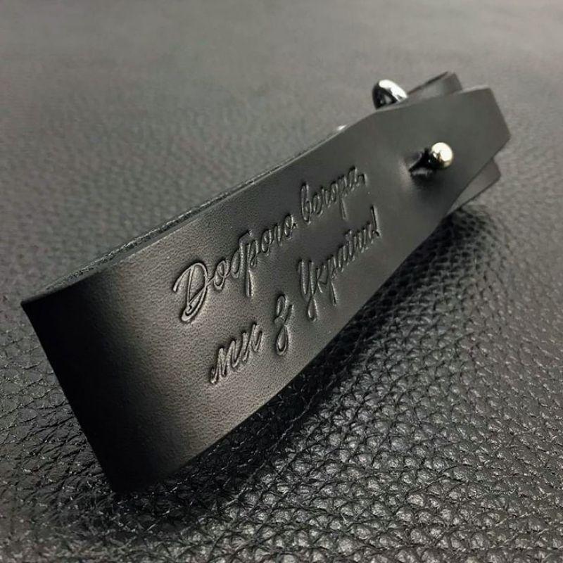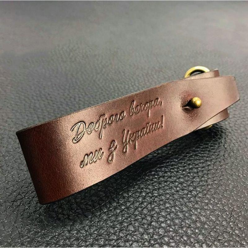 «Доброго вечора ми з України». Брелок изготовлен из натуральной ременной кожи.
