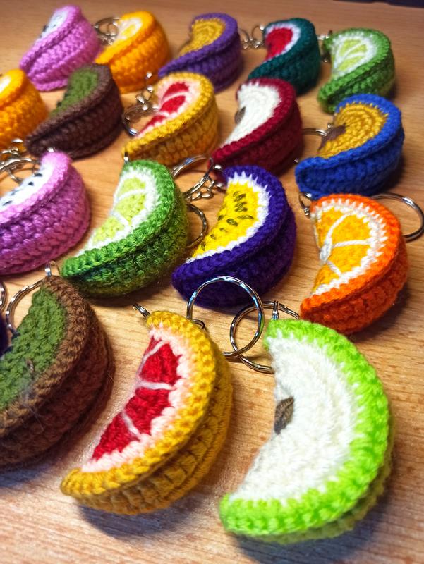 Такие брелочки могут быть отличным маленьким призентом, подарочным сувениром или милым личным украшением на ключи, сумочку (рюкзачок) или в авто, которые можно менять в зависимости от настроения или цвета одежды (аксессуаров) Это дольки разнообразных вкусных фруктов и цитрусовых (лимон, апельсин, грейпфрут, слива, арбуз, яблочко, питахайя, гранат, маракуйя, киви) Цена брелочка : 35 грн Цена набора из 10шт. : 300грн. Под заказом с подпиской ориентовно 10шт - 2дны.