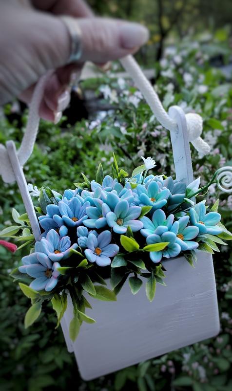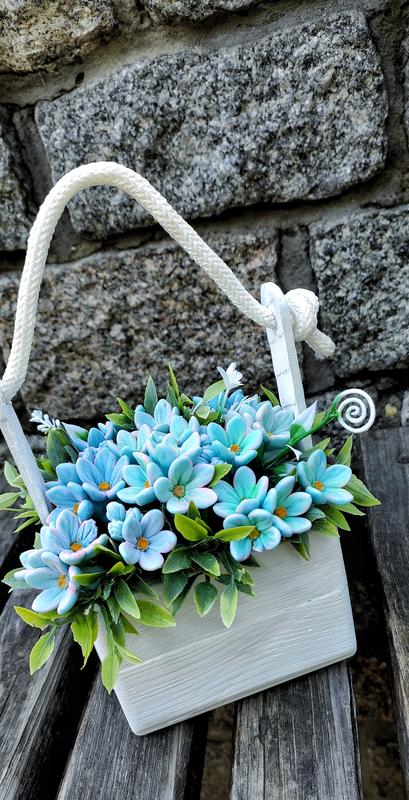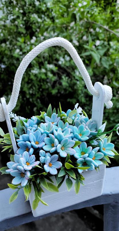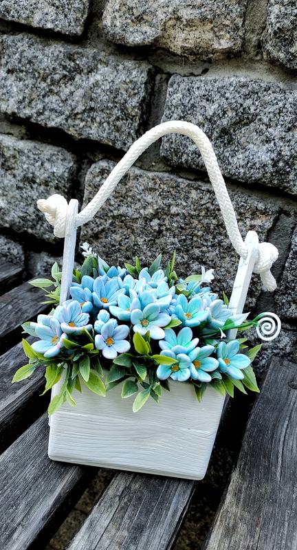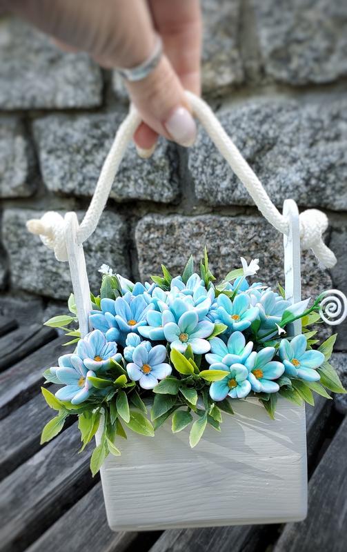 Интерьерная композиция из мыла в деревянном ящике.Незабудки