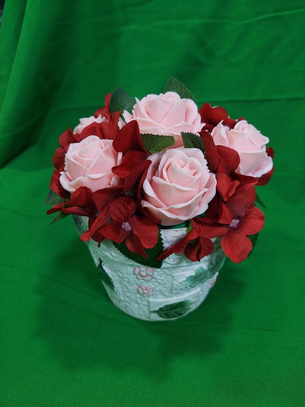 Такой букет станет лучшим подарком для вашего любимого человека. Он никогда не свянет и не спортется, аромат будет долгое время наполнять помещение! Такой подарок будет напоминать о празднике и человеке, который подарил ему его!