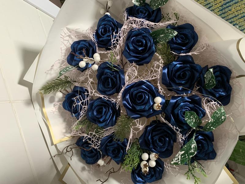 17 роз из атласных лент,розы с блестками, приятный подарок на все праздники.