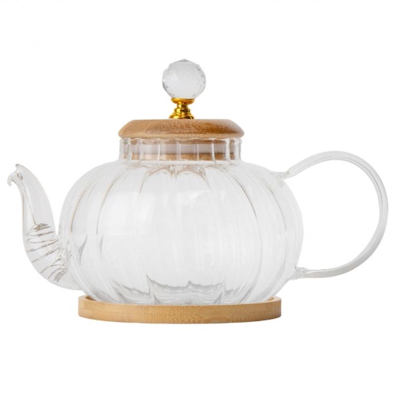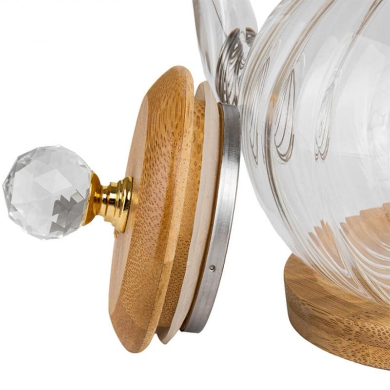 Стеклянный заварник с бамбуковой крышкой - это стильный и практичный аксессуар для приготовления чая, элегантный элемент интерьера и отличный подарок! Он имеет следующие характеристики: 1. Стеклянный корпус: Главная часть заварника изготовлена из высококачественного стекла, которое не влияет на вкус и аромат чая. 2. Бамбуковая крышка: Заварник комплектуется эстетической крышкой из переливающегося бамбука и оригинальным камешками. Бамбук является природным материалом, который устойчив к высоким температурам. Крышка хорошо подгоняется к корпусу заварника, чтобы обеспечить оптимальную температуру и интенсивность заваривания. 3. Подставка: Заварник комплектуется бамбуковой подставкой, которая обеспечивает стабильность и удобство при его использовании. 4. Фильтр для заваривания: Заварник имеет встроенный металлический фильтр для легкого и удобного заваривания чая без необходимости использовать дополнительные чайные сытка или фильтр-капсулы.