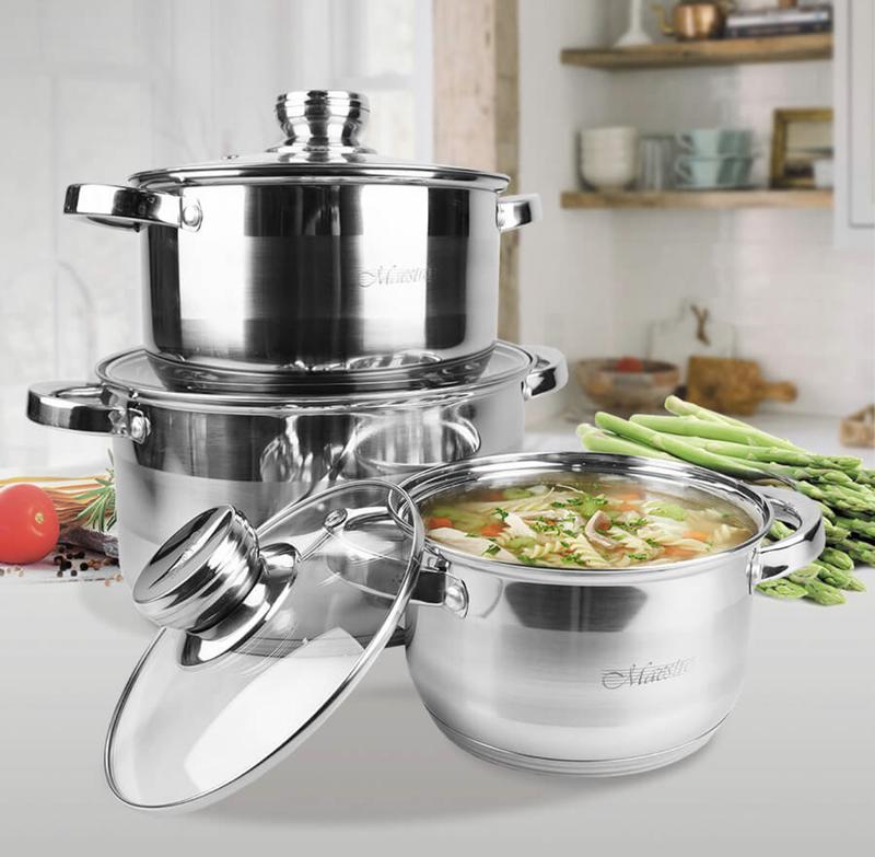 Набор кастрюль Maestro подходит для всех видов плит, включая газовые,