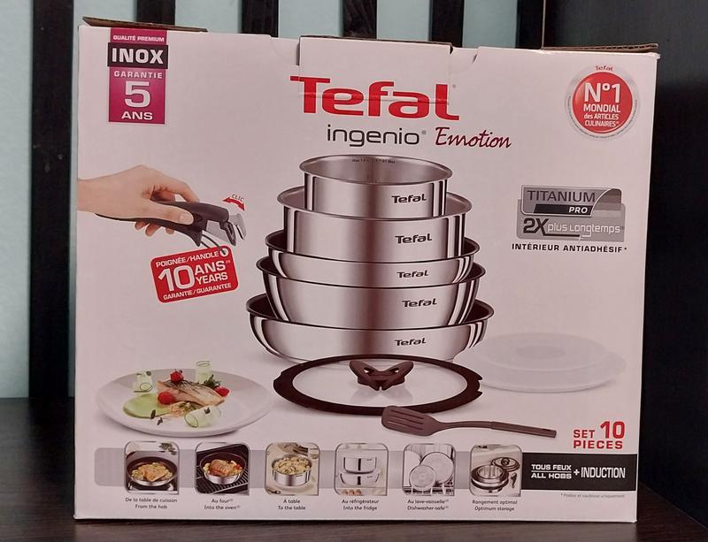 Набор посуды Tefal Ingenio Emotion 10 предметов (L925SA14)Новый! Все запаковано!Комплектация: сковорода 22 и 26см, сотейник 24см, ковши 16 и 20см, крышки 16 и 20см для ковшей, крышка стеклянная 24см, съемная ручка и лопатка.