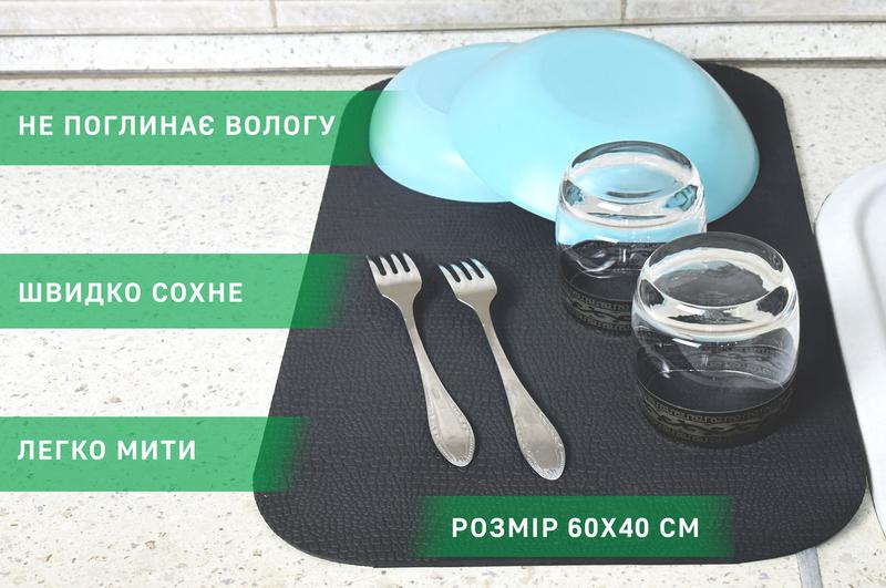 Если у вас на кухне сушка для посуды настольная, просто положите под нее наш