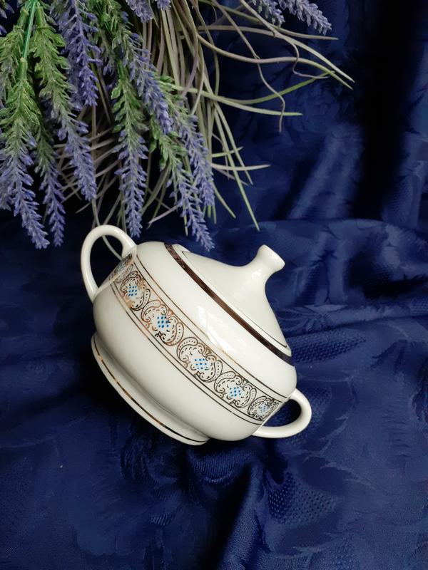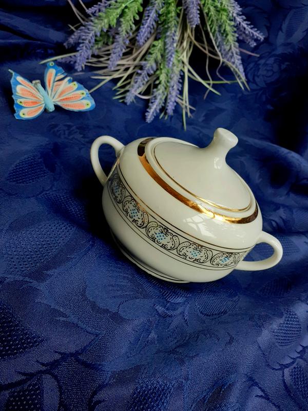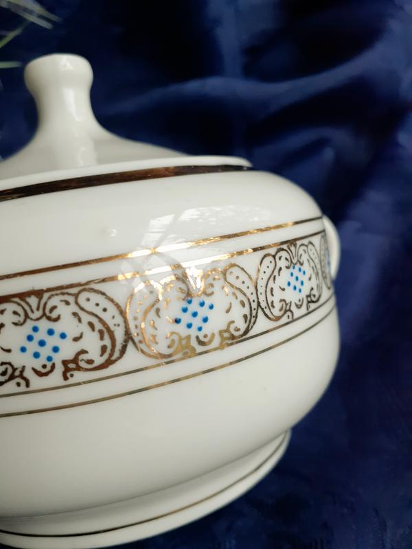 Вашему вниманию редкая сахарница из чайного сервиза, производства Довбышского фарфорового завода, основанного в 1823 году в Житомирской области, где были обнаружены крупнейшие в Украине месторождения каолиновой глины. Довбышский завод всегда отличался тонким акцентом деталей, равномерным прозрачным красочным слоем, изящной формой, что позволяет отличить работы от подделок!