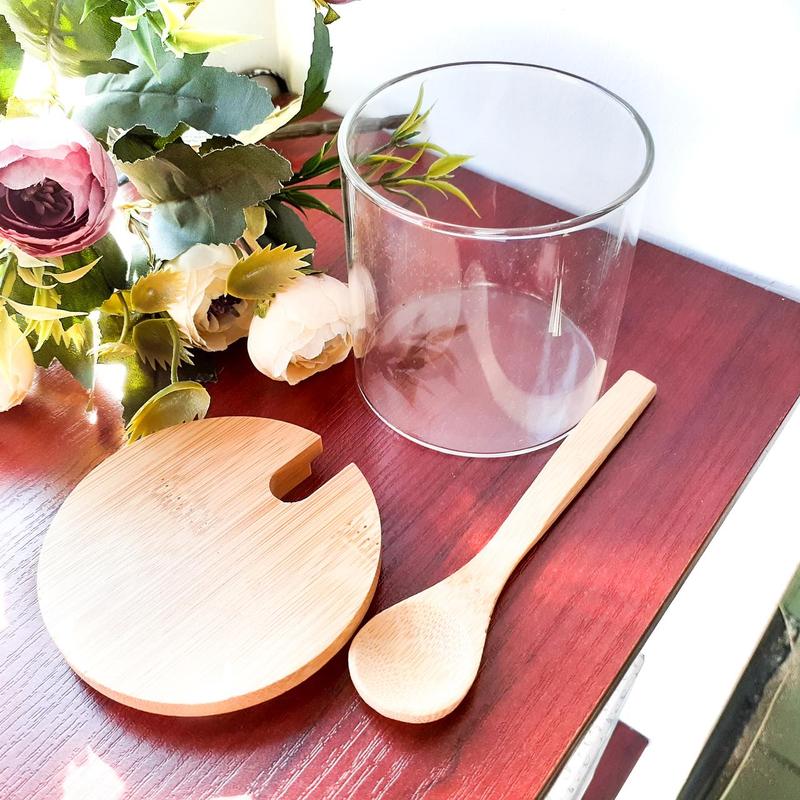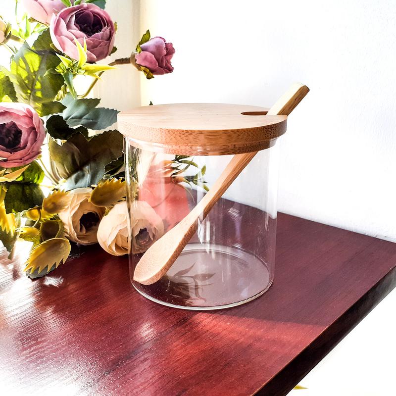 Сахарница "Стокгольм" стеклянная с бамбуковой крышкой идеально подходит для