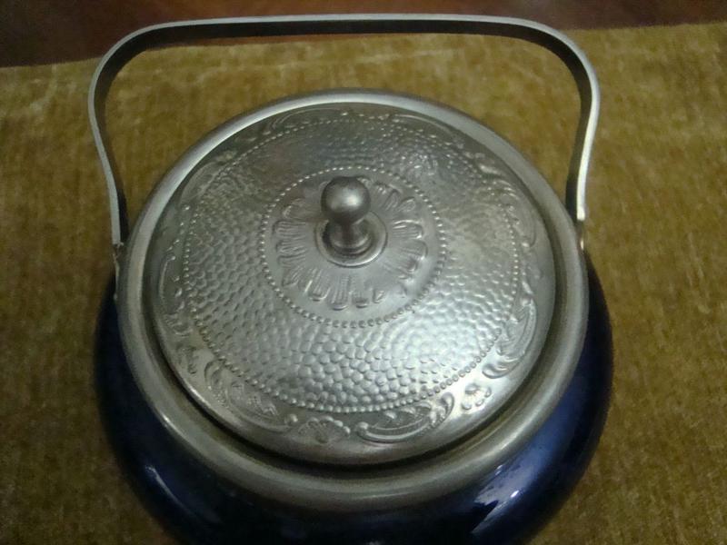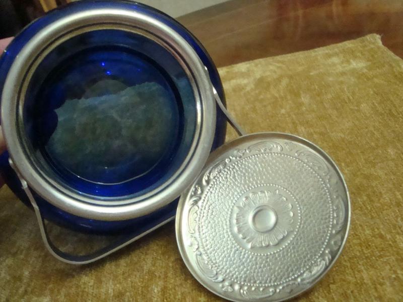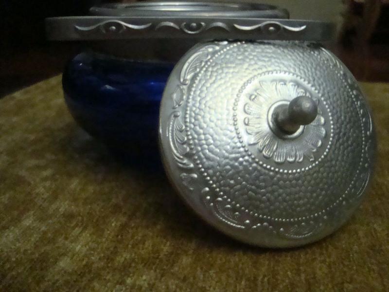 Антикварная Сахарница Кобальт Мельхиор СССР ЗИШ Без сколов и трещин Высота 9 см