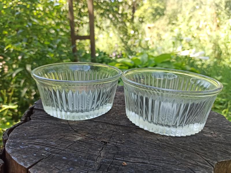 Небольшие, диаметр 12 см, высота 5 см. Подходят для салатов, закусок, как сахарницы или для других нужд. Цена за две.