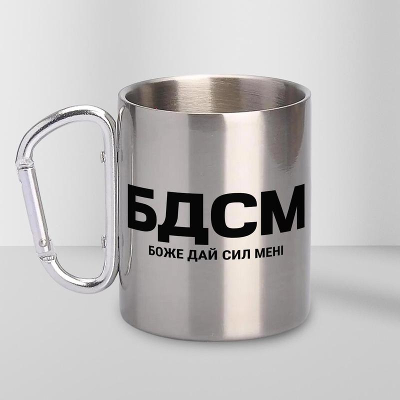 Кружка металева з карабіном "бдсм" 300 мл срібляста
