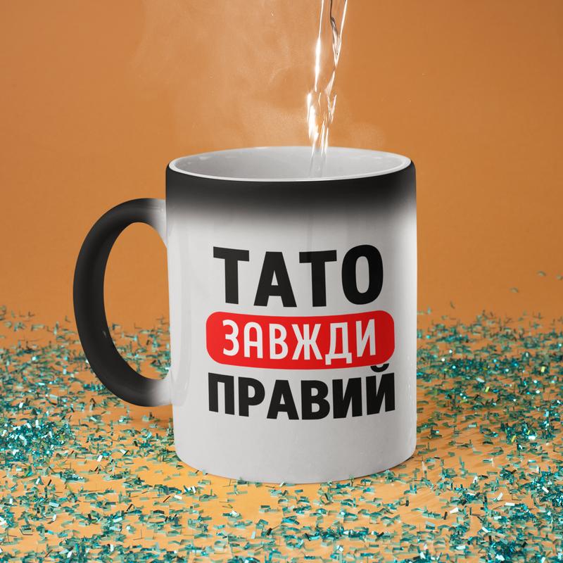 Чашка хамелеон керамічна з принтом "тато завжди правий" 330 мл