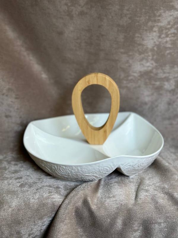 Менажница lefard 944-073 на бамбуковой подставке 24х24х16 см белый