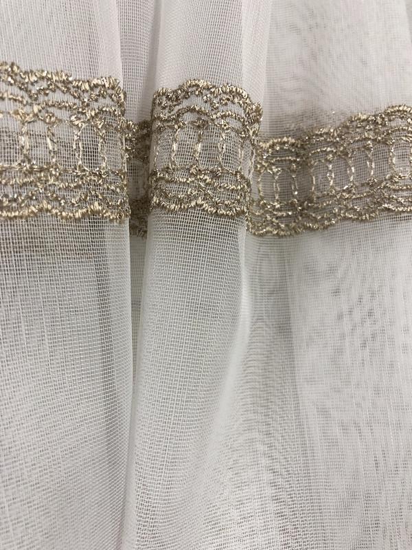 Легкий и прозрачный тюль бамбук, имеет слегка сетчатую структуру. На ощупь этот материал очень похож на лён. Тюль способен образовывать объемные и формоустойчивые воланы при драпировках, а утяжелитель по низу полотна поддерживает красивую форму складок. Гардина смотрится изысканно и благородно, хорошо сочетается с любыми портьерами.