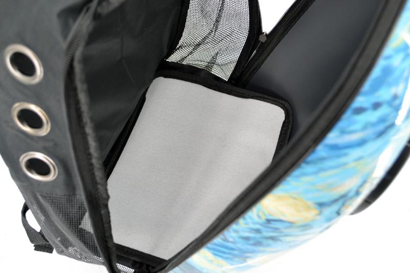 Передняя часть рюкзака твердая что не позволит травмировать питомца. На