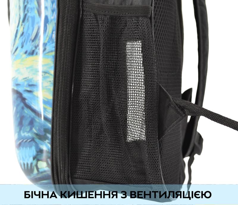 Рюкзак-переноска имеет сетчатые боковые панели и по три вентиляционных