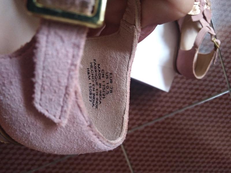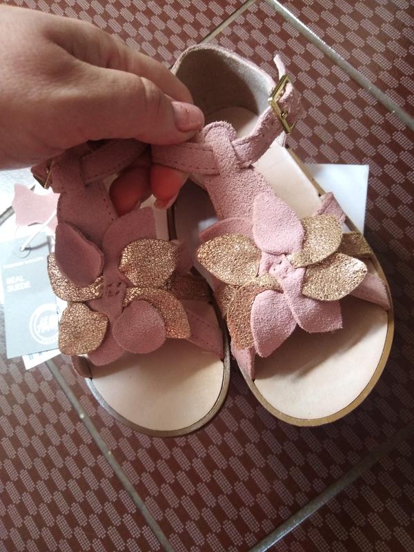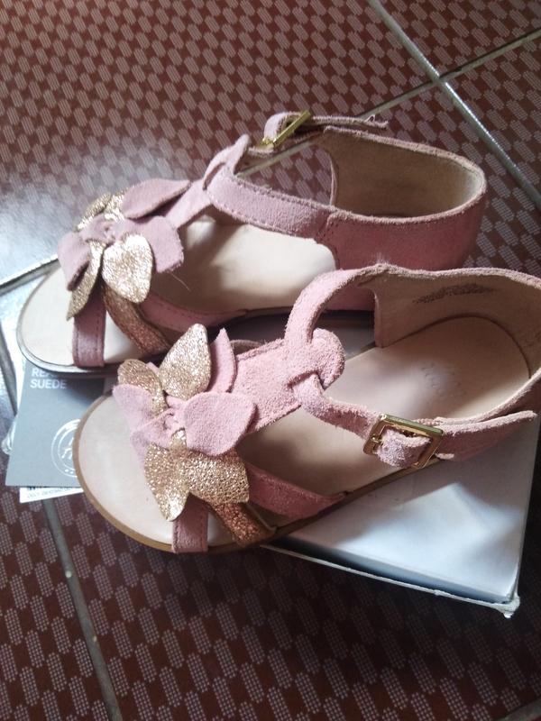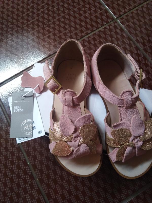 В ідеальному стані, сліди носіння тільки на підошві. В заводській упаковці, з сайту H&M . Одегались 2 рази, швидко виросла ніжка. Устілка повністю 18 см, краще на ніжку до 17,5 см. Додаю опис з сайту: Преміум вибір. Замшеві сандалі з декоративним бантом з металізованої шкіри спереду, що переливається, і регульованим ремінцем на щиколотці з металевою пряжкою і потайною гумкою. Шкіряні устілки та гумова підошва. Склад Підкладка та шкарпетка: 100% шкіра. Підошва: 100% гума. Верх: 100% замша.