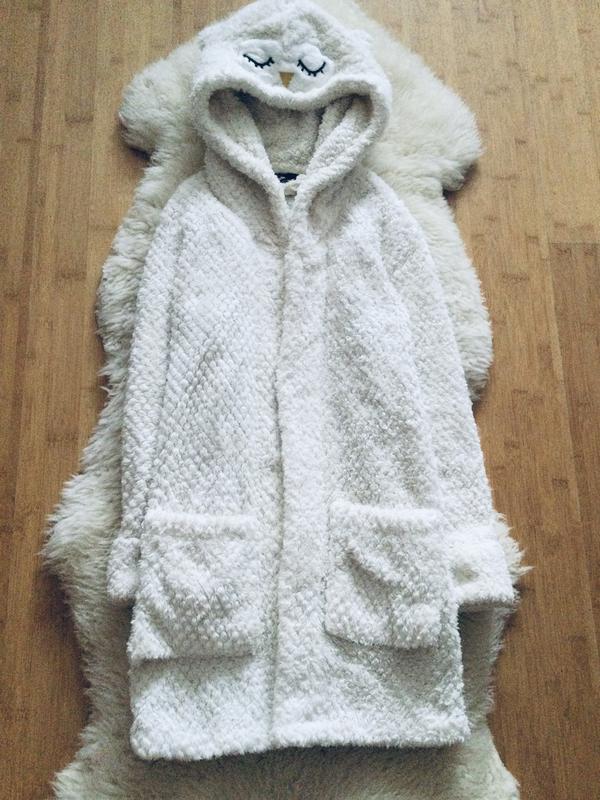 махровый халат Совушка 11-12 лет. банный, фвктурный флис, теплый. на море или в бассейн. Состояние: идеальный. Цвет Айвори. есть Карманы. длина 80; рукав от ворота 66