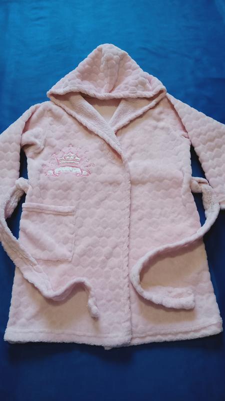 Детский розовый флисовый махровый халат с поясом капюшоном вышивкой корона