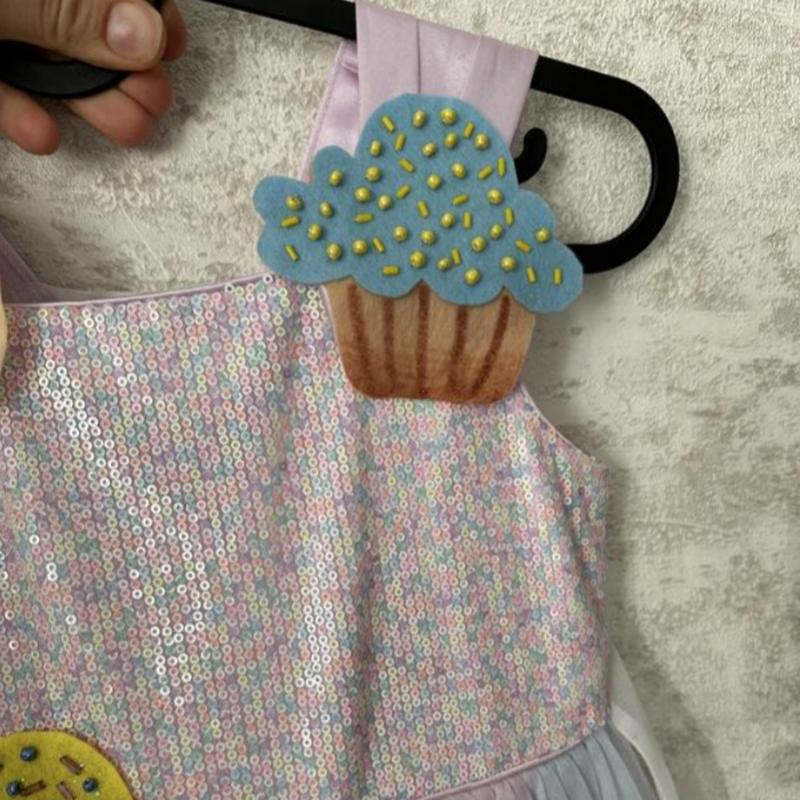 Очень красивое платье в стиле «сластье».Размер 4-6 лет. По бирке 5 лет.Длина 65 см, пог 31, пот 30.Есть фото, видео на ребенке.Если есть вопрос - обратитесь!