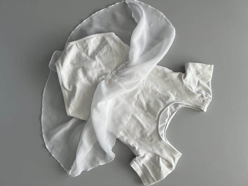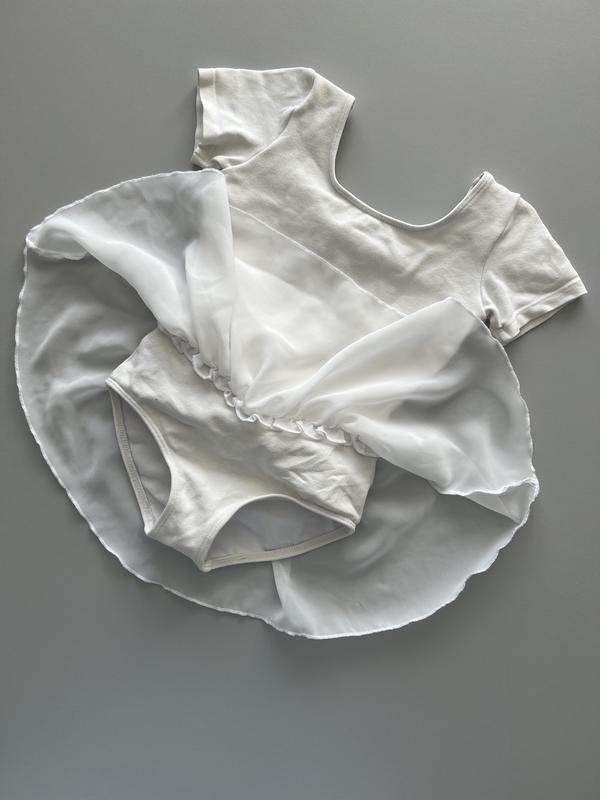 Трико для танцев с шифоновой юбкой белое