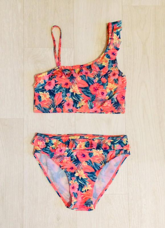 Primark оригинал Англия Раздельный купальник с цветочным принтом В бюсти и трусиках есть подкладка - сеточка Размеры: 140 см (9-10 лет), 158 см (12-13 лет)