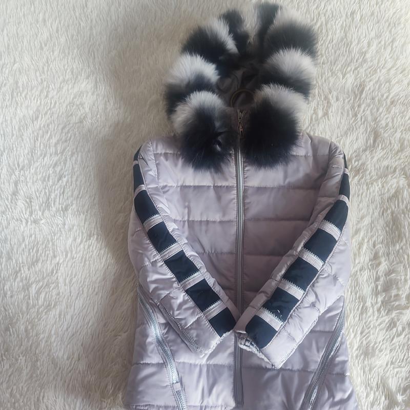 карта на пуху с натуральным мехом. длина куртки 59см. полу обхват груди 41см. длина рукава 46см