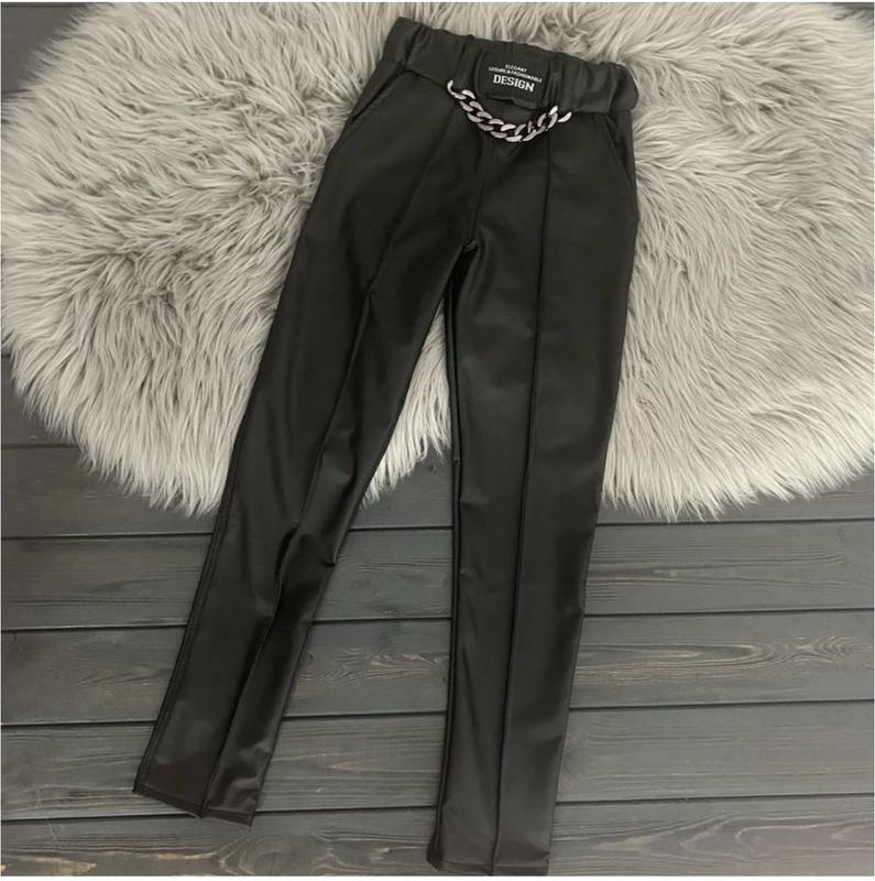 Легінси з екошкіри "Ланцюг" ткань: эко кожа на флисе, стрейч карманы полноценные! качество супер! высокая посадка р.122 длина/шар/бедрен/пояс 74/55/33/23см- р.128 длина/шаг/бедрен/пояс 78/57/34/24см- р.134 длина/шар/бедрен/пояс 81/61/35/25см- р.140 длина/шар/бедрен/пояс 84/64/38/26см- р.146 длина/шаг/бедрен/пояс 88/67/39/27см р.152 длина/шар/бедрен/пояс 91/70/39/28см р.158 длина/шаг/бедрен/пояс 95/73/43/29см