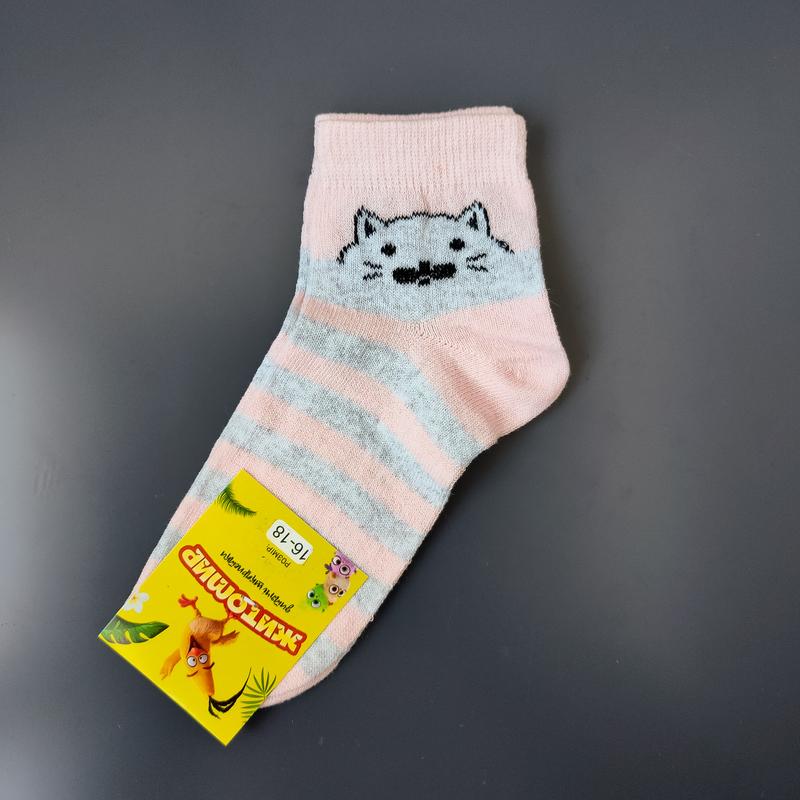 Носки детские хлопковые розовые с котиком 25-28 розмір (16-18 см)