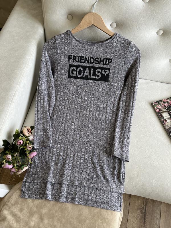 Платье-туника для девочки в рубчик серого цвета бренда Yigga.