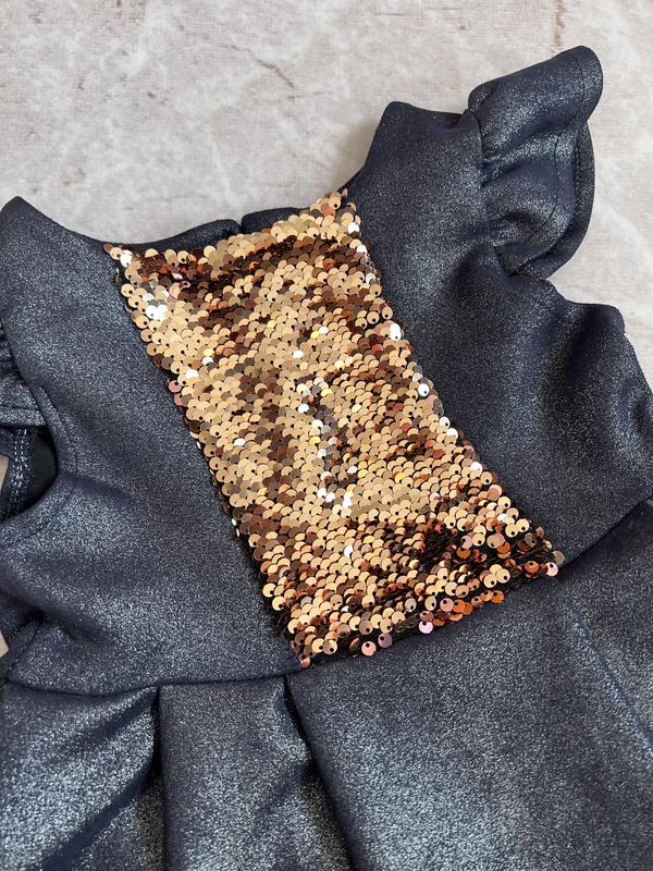 В идеальном состоянии, очень красивое платье. Наделы на День рождения. Белые колготы и гольф, сверху была данное платье. Рекомендую Пайетки блестят разным цветом в одну и в другую сторону