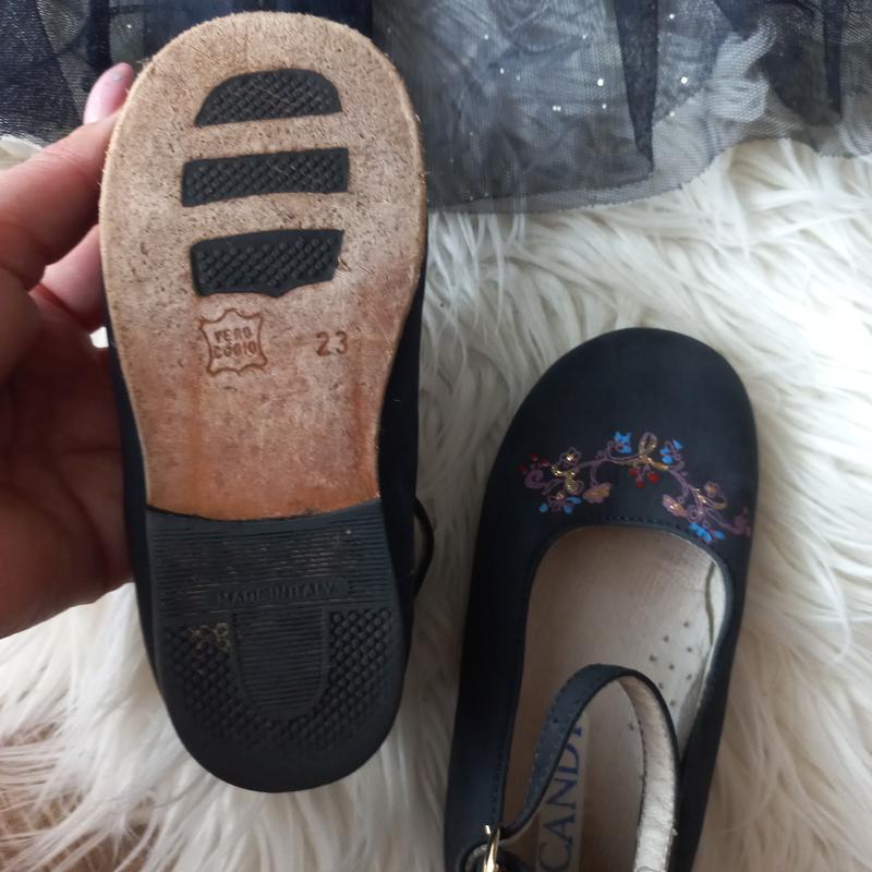 Темно синее платье слегка с блестками очень красивое.Туфельки кожаные 23р Вместе с платьем продаю