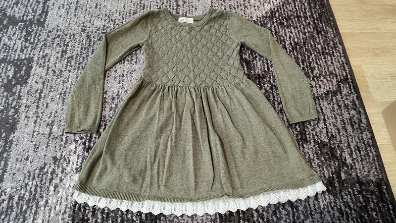 Красивое платье H&MРазмер 110/116Длина 59ширина 30Состав, хлопок, шерсть, полиамидМягкое и приятное на ощупь платье Состояние без нюансов, пятен и дырок
