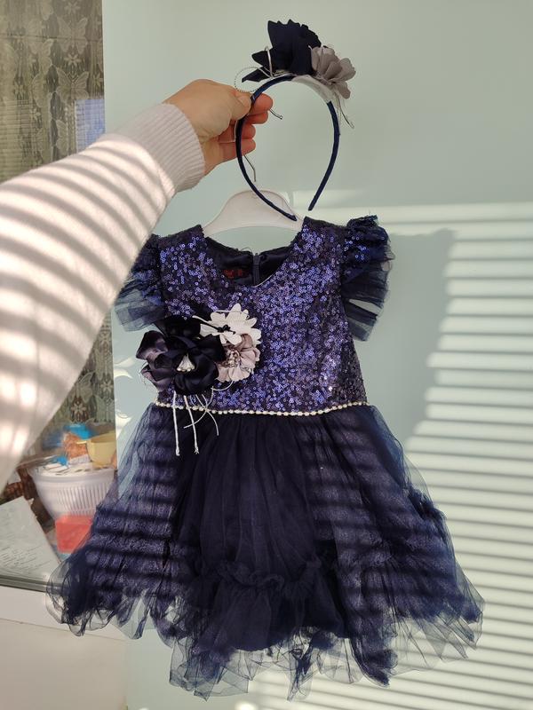 Яркое платье на девочку, для создания красивого образа на праздник в садик, или празднования дня рождения и другого праздника. Состояние новой. Платье а к нему - брошь + обруч для волос с декором