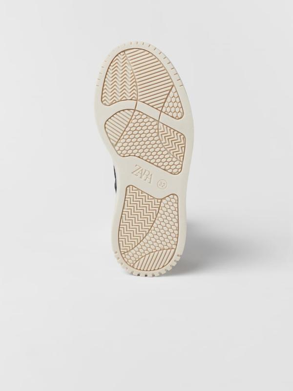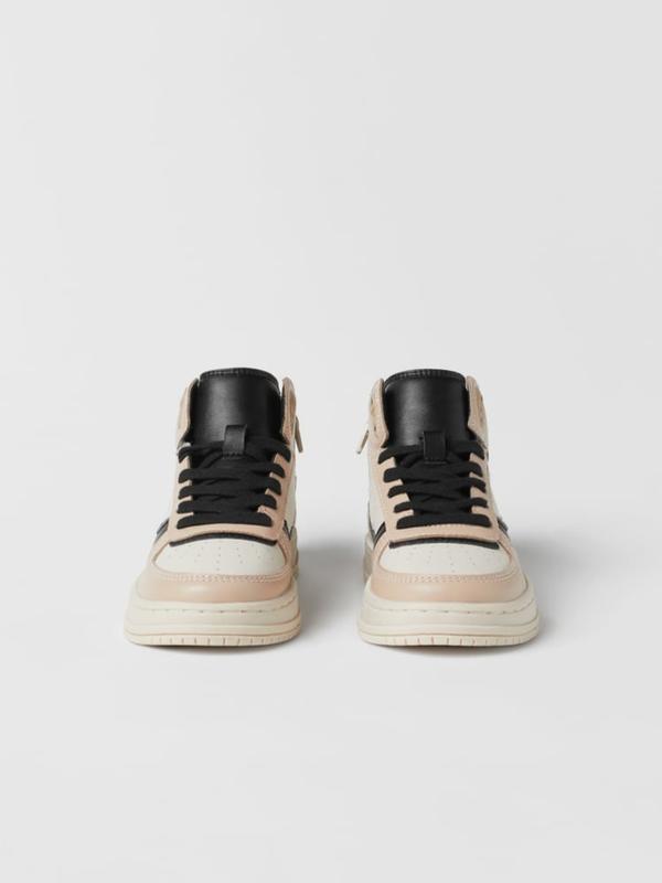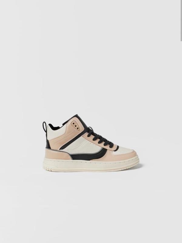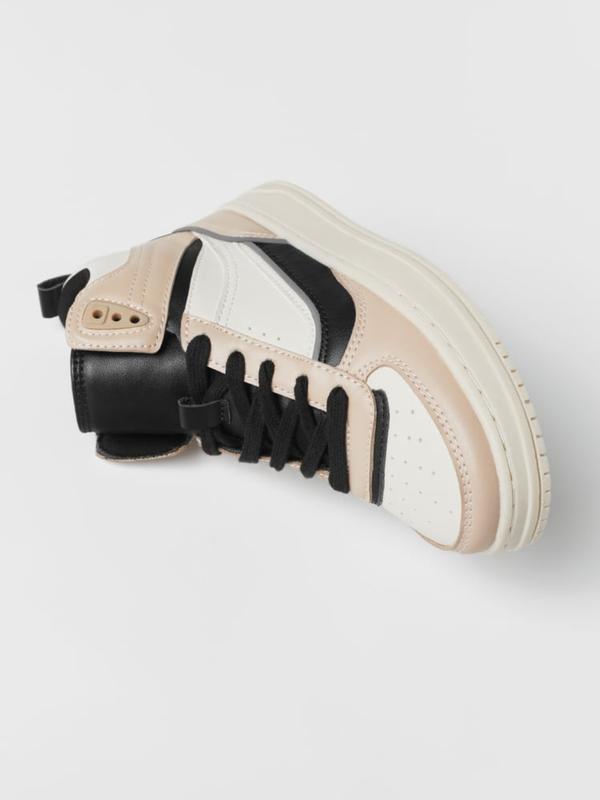 Высокие кеды с контрастными деталями разных цветов фирмы Zara. Застежка на молнию сбоку, регулируемая шнуровка. Петля сзади для удобства при одевании. Подкладка и стелька из ткани с эффектом памяти, резиновая подошва.