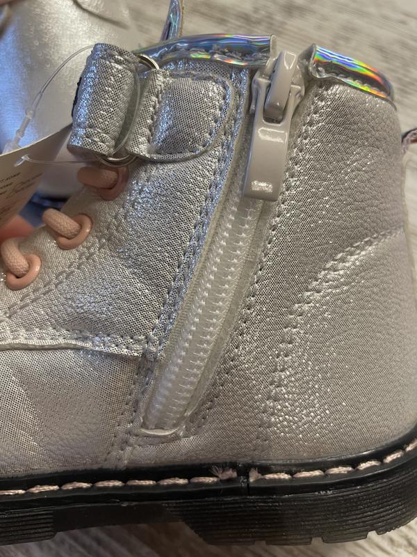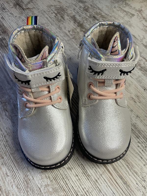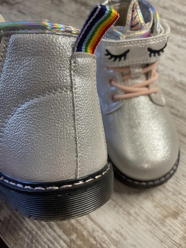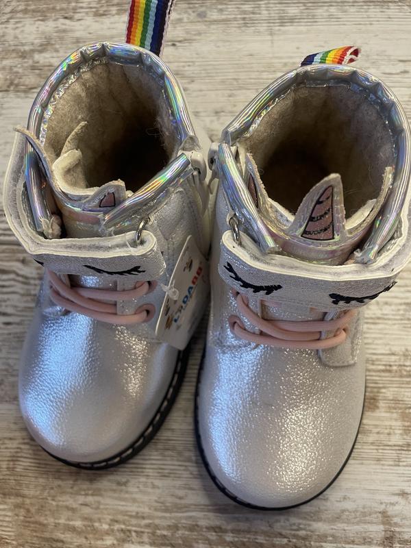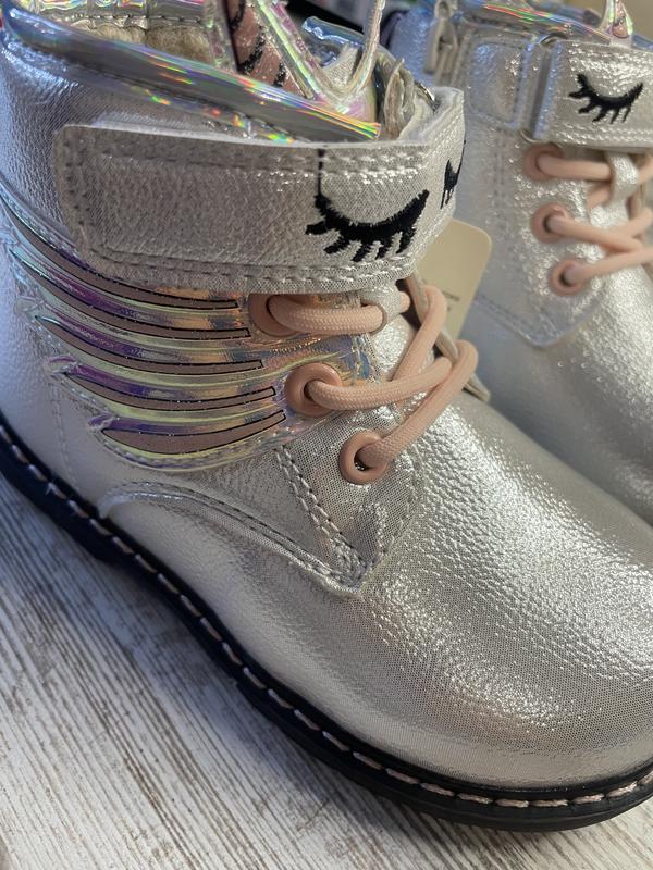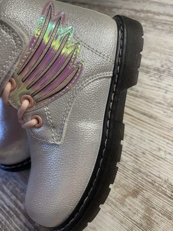 Ботинки для девочек серебристого цвета. Легкие, удобные, сбоку молния, спереди липучка, удобно надевать. Качественные, стильные подошва прошита. Есть супинатор.