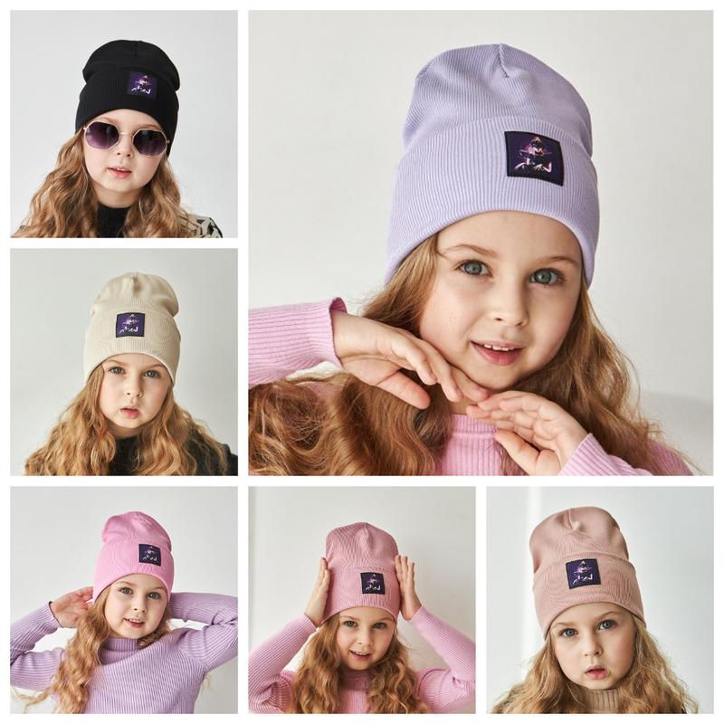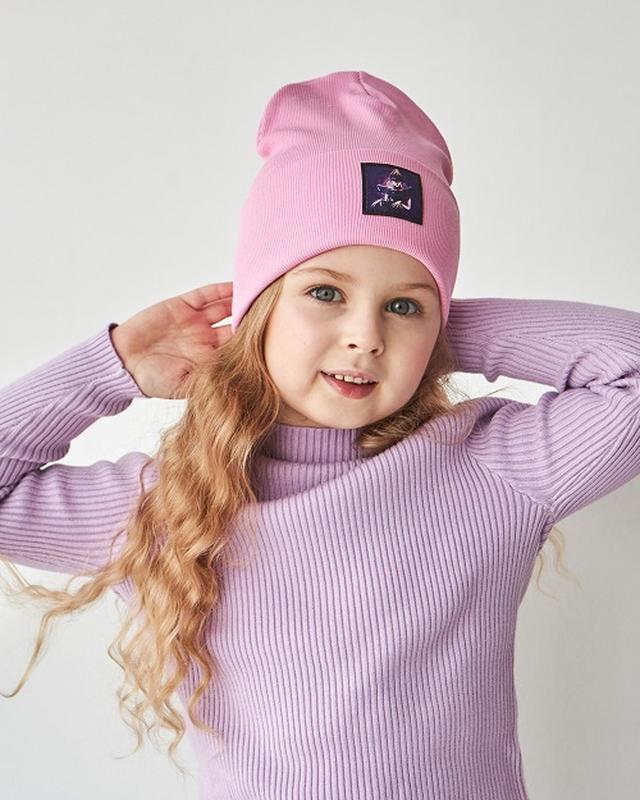 Шапка с отворотом для девочки. Спереди нашивка. Подходит на девочек дошкольного возраста. Размер 50-56. Изготовлена из высококачественной итальянской пряжи. Склад: 97% cotton, 3% lycra (двошарова, хб).