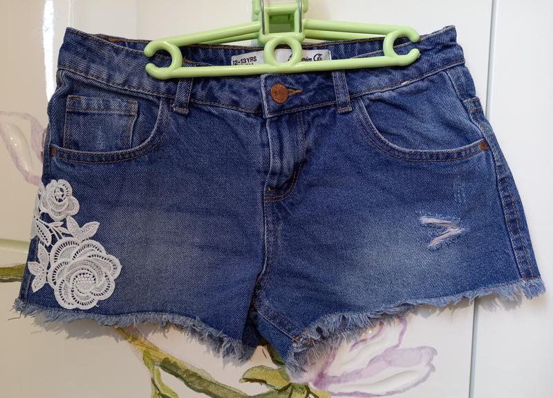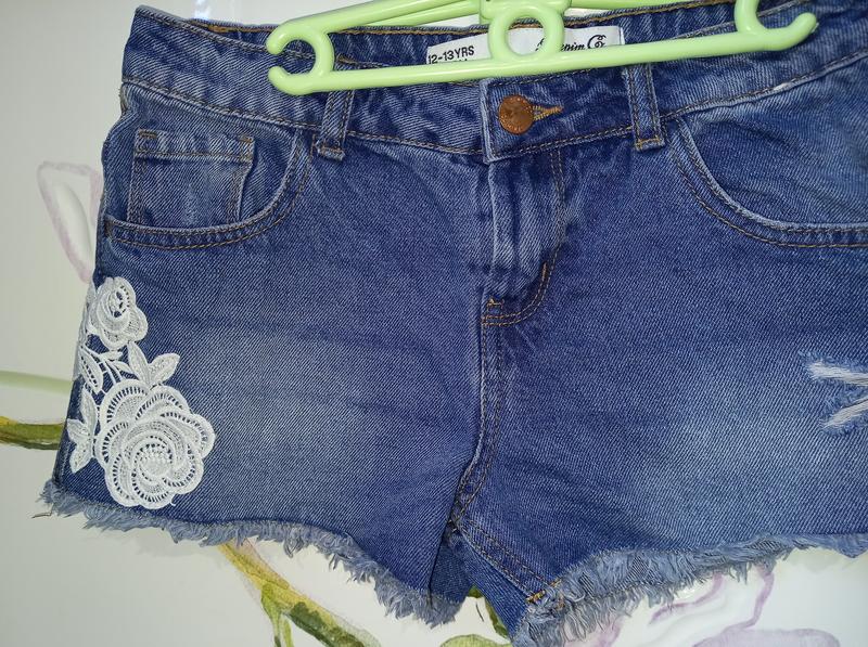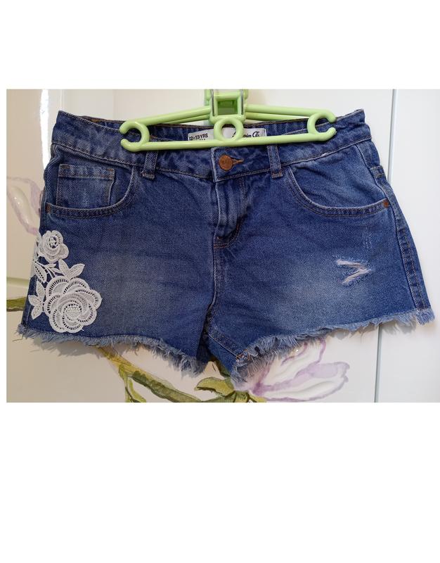 Модные фирменные джинсовые шорты с кружевом Denim Co для девочки 12-13 лет рост 158Длина по боковому шву – 24,5, пояс – 35,5 (утяжка), ПОБ –45.Фирменные, качественные в отличном состоянии как новые.