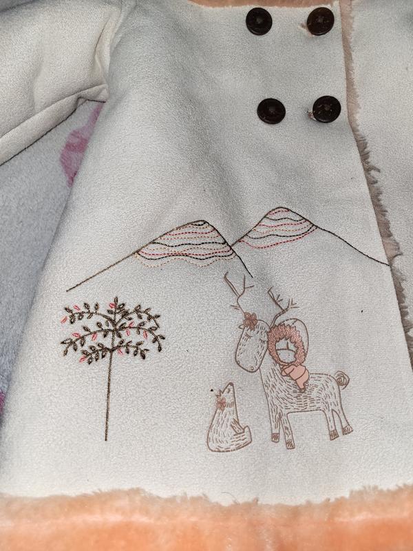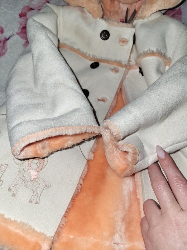 Чудова дубляночка для принцеси. Теплая, легкая. Состояние красивое, мех вообще в идеальном состоянии. Размер по набору 81. Длина 42 см, рукавчик в отвернутом виде 33 см, длину можно регулировать