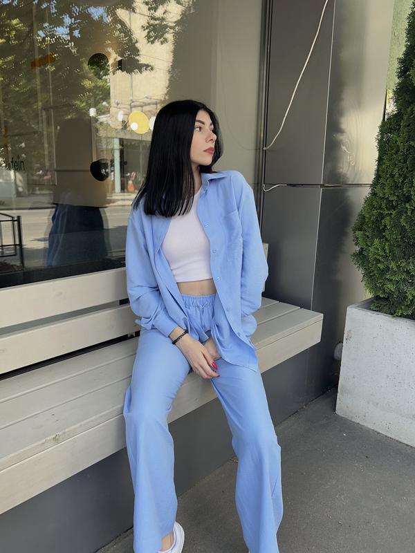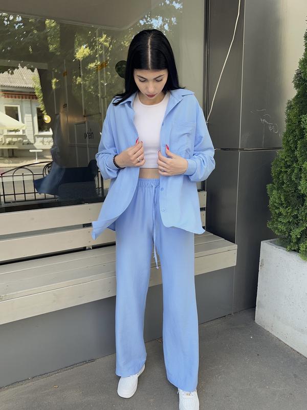 Летний подростковый костюм для девочек в голубом цвете - отличный вариант для