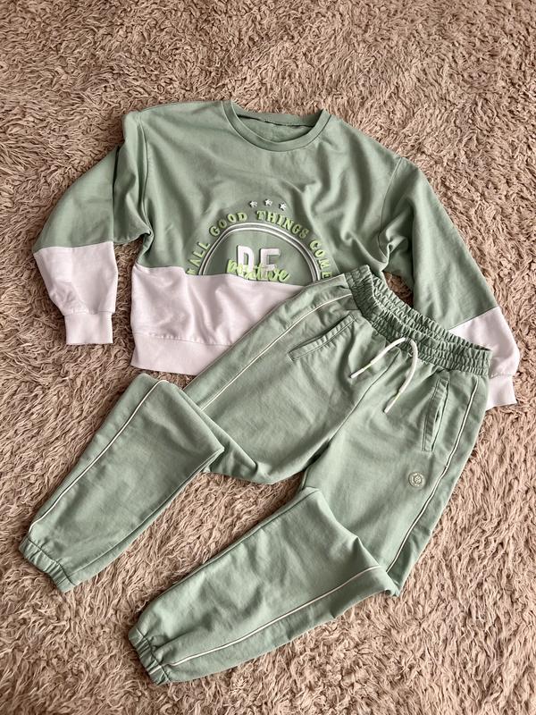 дуже зручний костюм для дівчинки від Mayoral. Стан нового. Кофта вільного крою, штани рівного крою на резинці : пояс 27 (тягнеться до 41) довжина 80