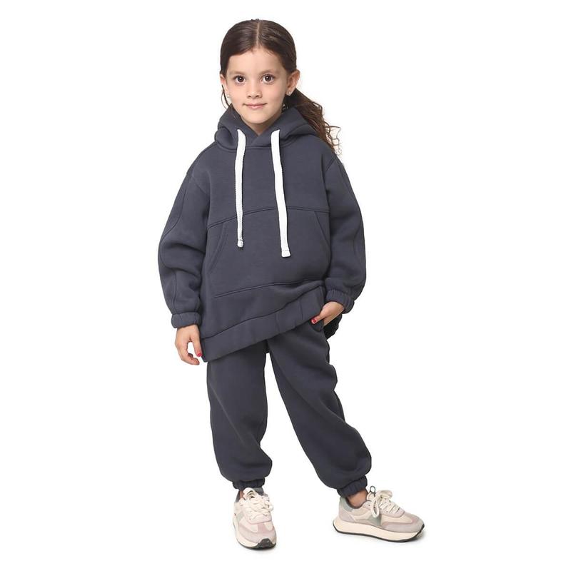 Костюм двойка детский спортивный, худи кенгуру оверсайз, для девочки, теплый, с начесом, с...