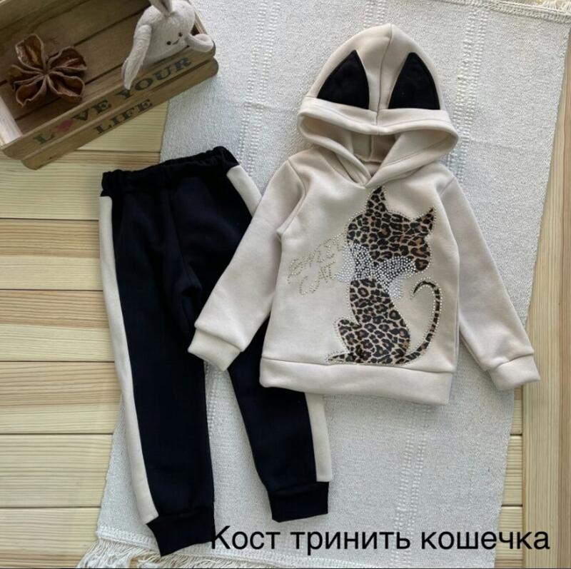 Шикарный костюм- худи и штанишки тринить на флисе с ушками!