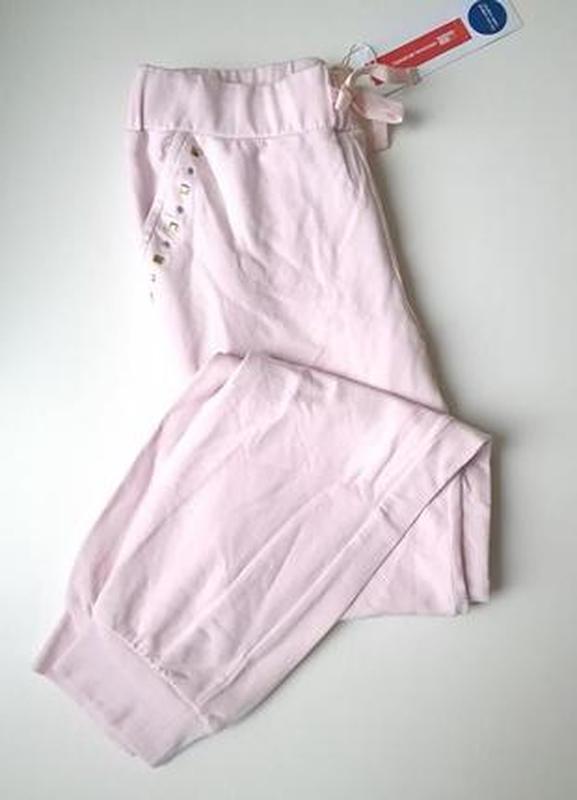 Брюки утепленные легкая байка и трех нить, розового цвета, на карманах стразы. Широкая резинка и завязках. Эластичные манжеты, очень мягкие и отличное качество. Замеры: длина 86, посадка 26, шаг 65, пояс 33 см
