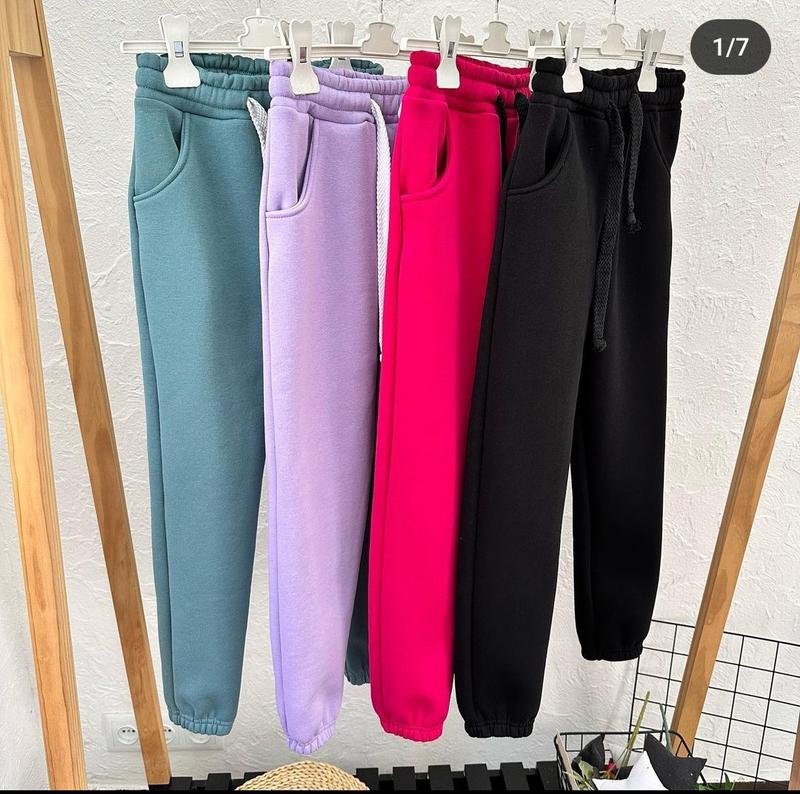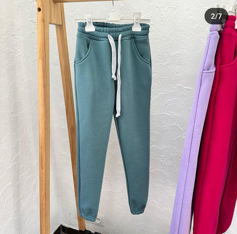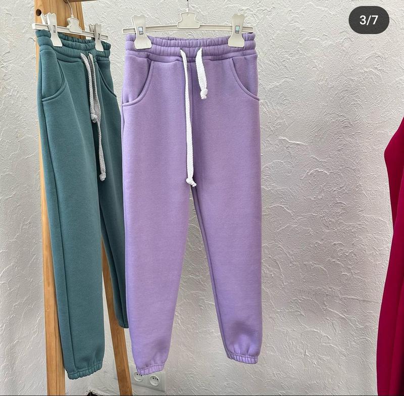 Базовые брюки из теплого трехниточного футера с начесом. Модель с накладными карманами, манжетами, на широком поясе с эластичной тесьмой, отстрочкой и шнурком. Полотно плотное, обладает хорошими теплоизоляционными свойствами, при правильном уходе может давать незначительную усадку после стирки.