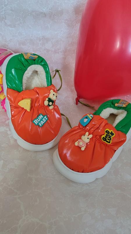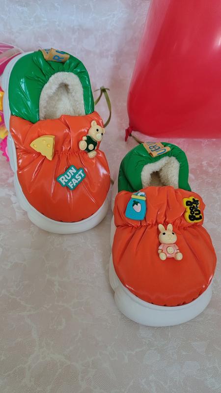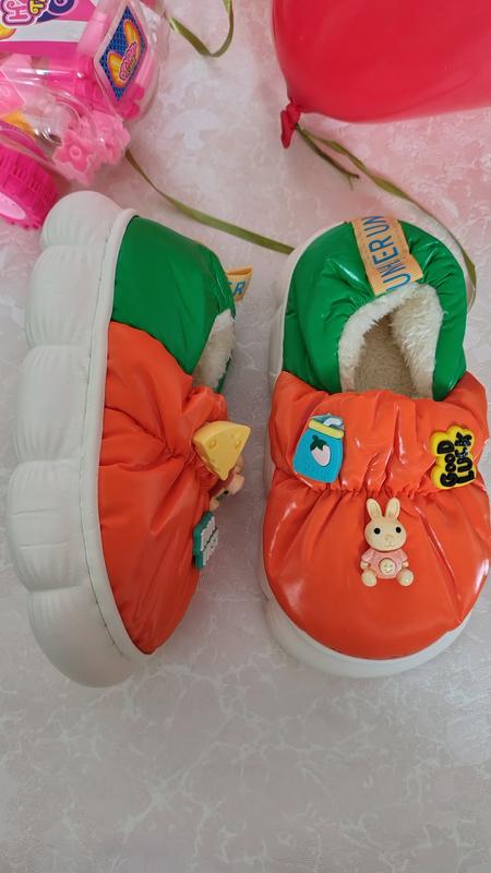 Очень красивые и теплые детские тапочки. Изготовлены из плащёвки, и утеплены эко-мехом. Подошва пена. Джибитсы крепятся на кнопочки.