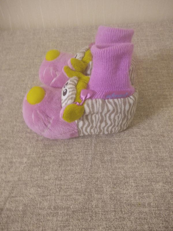 Прикольные, теплые тапочки-игрушки - зверюшки с мигающими носиками, кнопка на ухе. Размер 24-26. На одном в нескольких местах отвалились пупырки, и разочарованная петелька для фиксации. Остальное все в идеале. Отличная находка, когда отключают отопление.