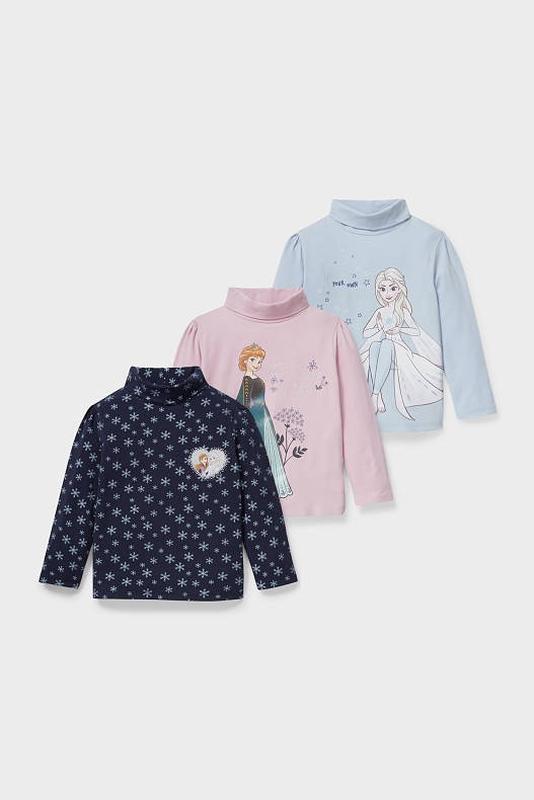 Водолазки из мягкого трикотажа с разными рисунками серии Frozen. Блестящий принт и прибитая кокетка на плече.