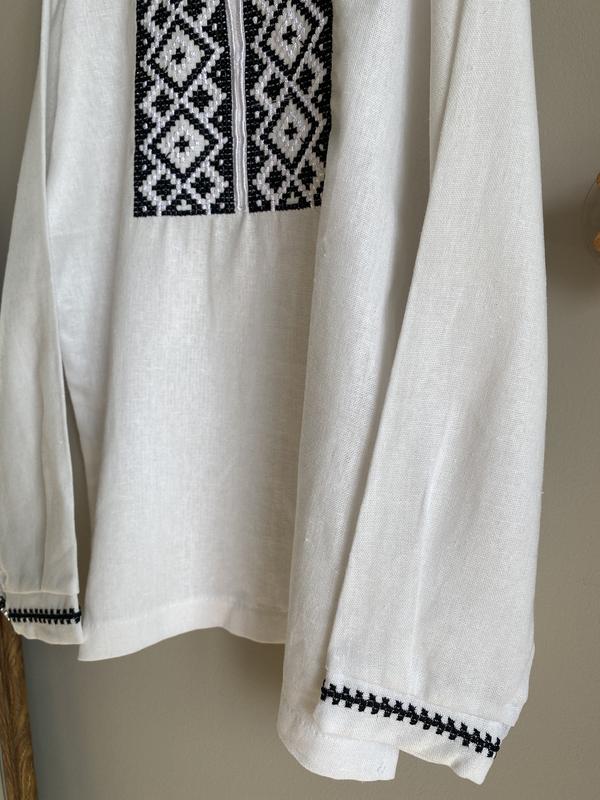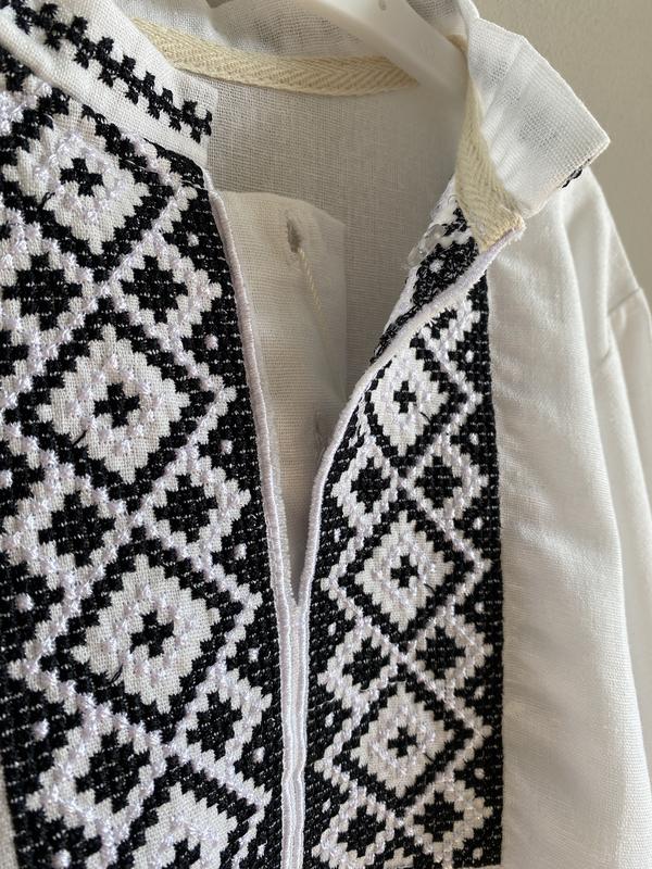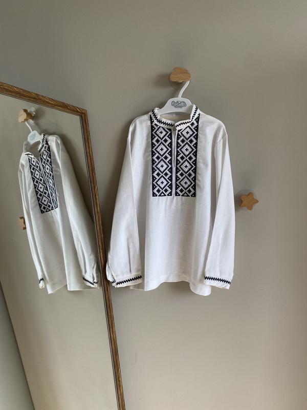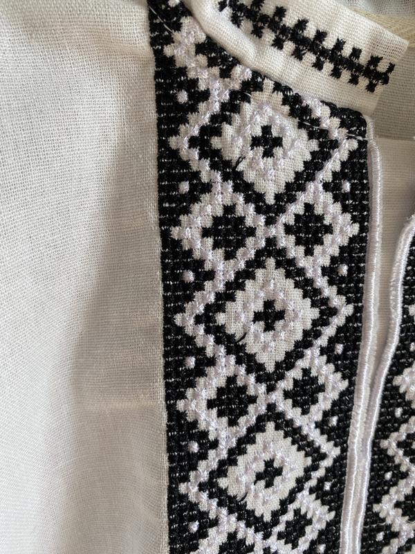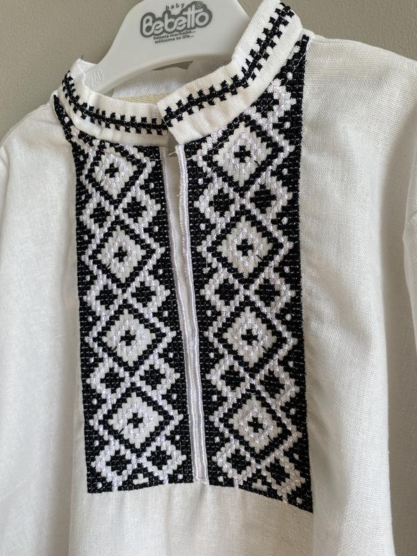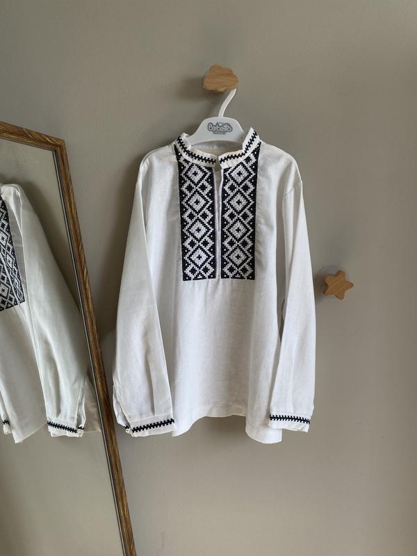 Детская вышиванка для мальчиков вышитая черно белыми нитями