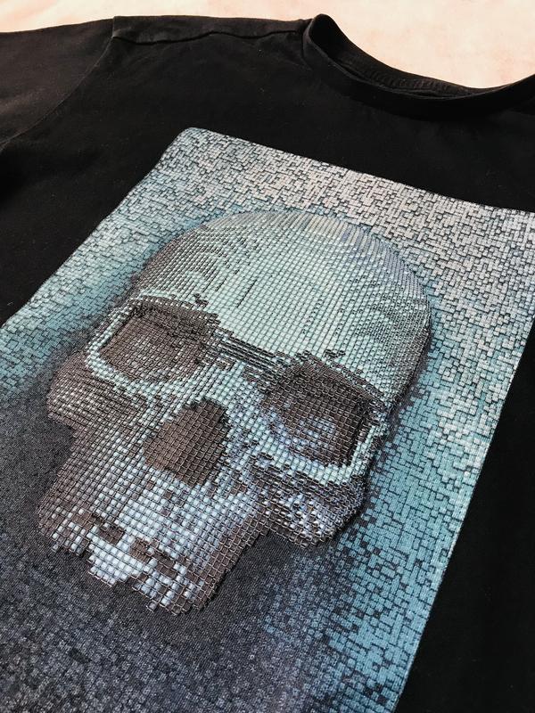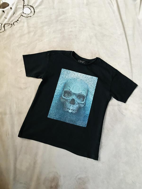 Стильная котоновая футболка Next, череп в виде мозаики выполнен. Стан - идеальный. Размер 122 (7 лет).